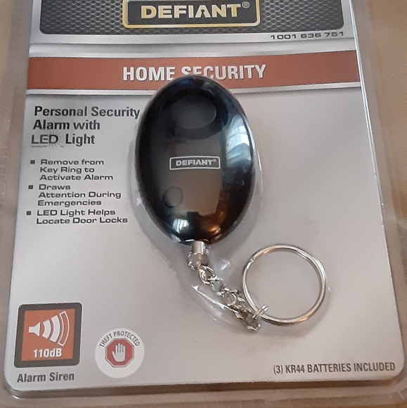 Home security, personal security alarm with LED light on keychain.