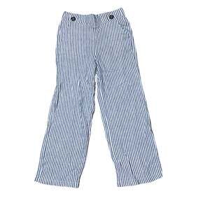 Definitions by D. Jeans Pants Elastic Waist Pull-on High rise Linen striped Coastal Grandma pants with two large accent buttons and two front slanted pockets size small. Length 40", inseam 28", rise 12", waist 14.5"