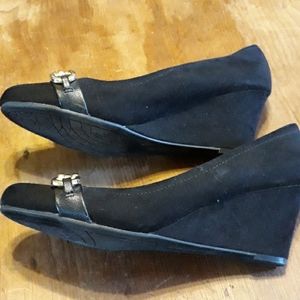 Deflex Comfort black wedge with gold accents. Very gently worn. Very comfortable!