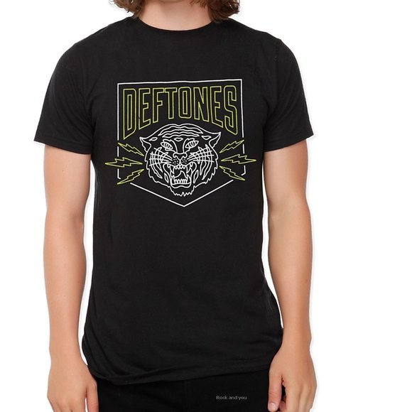 Black T-shirt from Deftones with tiger logo design. 100% heavy cotton.