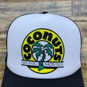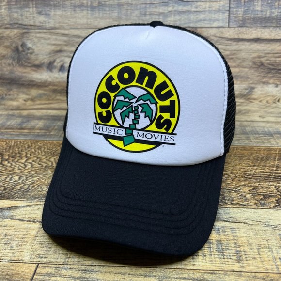 Defunct Coconuts Music And Movies Mens Trucker Hat Black Snapback Baseball Cap