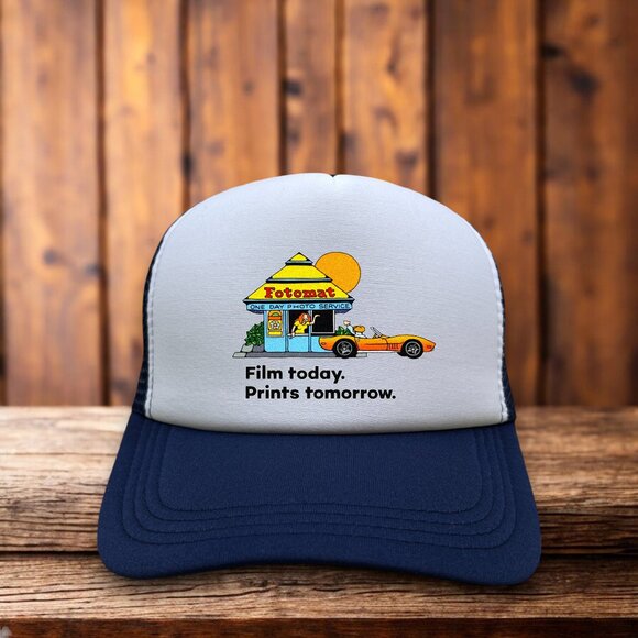 Defunct Fotomat Unisex Trucker Hat Blue Snapback Retro Photo Service Ball Cap