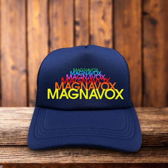 Defunct Magnavox Mens Trucker Hat Navy Snapback Retro Logo Nostalgic Ball Cap