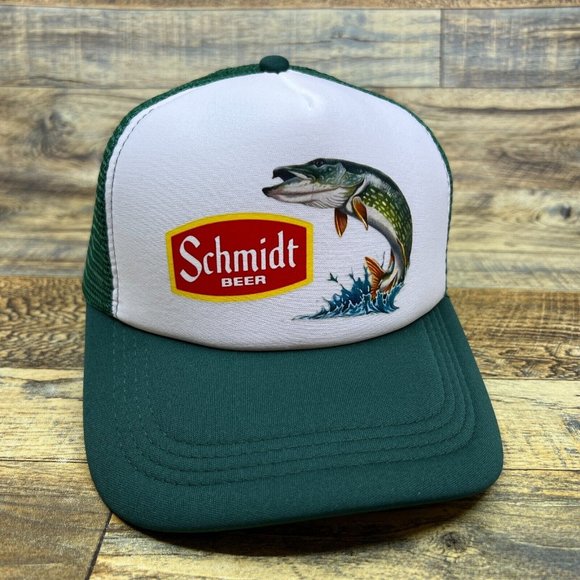 Defunct Schmidt Beer Fish Mens Trucker Hat Green Snapback Retro Lager Throwback
