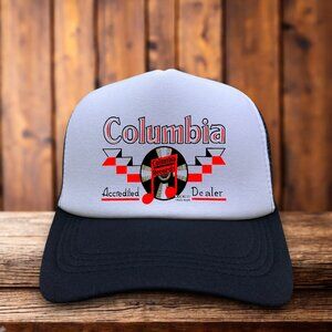 Features: Lightweight, medium crown, curved, foam front and mesh back, adjustable.
