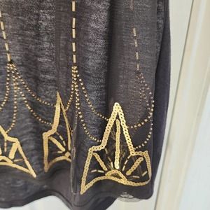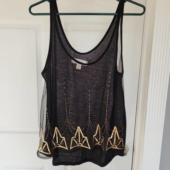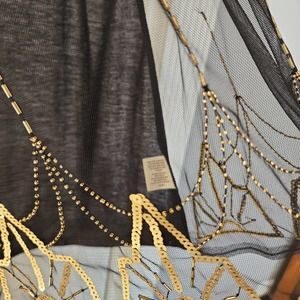 Degree black sheer tank top with gold sequences. Size L, worn once, non smoking home
