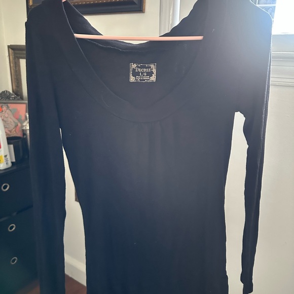 Elegant black top with long sleeves. Versatile and chic.