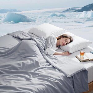 Cooling comforter with dual-sided PolarEdge fabric and Coolmax technology for hot sleepers. Lightweight yet cozy with moisture-wicking fill, this queen-sized blanket stays breathable, soft, and cool all night long.