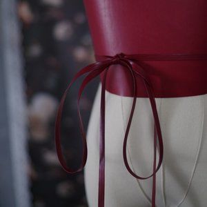 Inspired by the 'undone corset belt' by Dehanche. This belt is handcrafted from 2mm thick, Italian Vachetta full grain leather tanned in Tuscany, and features clean, burnished edges and tie straps that are hand stitched to the body of the belt.