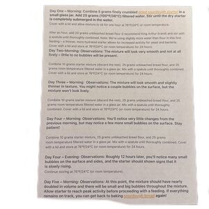 You will also receive directions on how to rehydrate and care for your starter. Starter should be ready to bake with in 4-5 days.