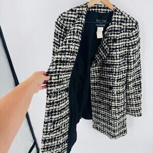 Dei Tre for Holt Renfrew Black & Cream Tweed Long Jacket — Made in Italy