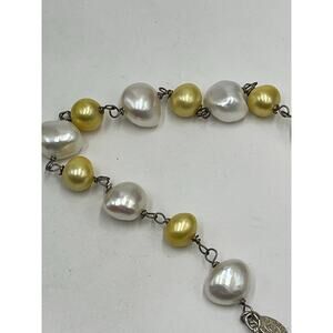 Deidda Firenze Italy Yellow White Baroque Pearl Bracelet Sterling Silver 8.25