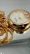 • Case: High-polish gold-tone metal with a sleek, rounded silhouette