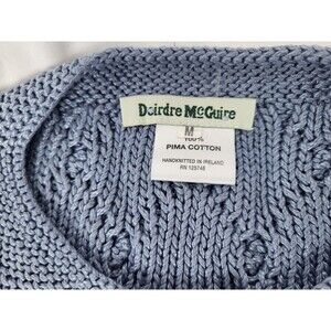 Deirdre McGuire Hand Knit in Ireland Cardigan Sweater Medium Pima Cotton Blue