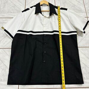 • Deist Safety Racing Button Shirt Mens Size XL Black and White Retro Workwear Top