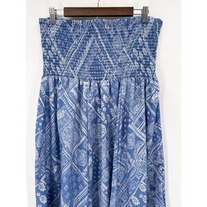 Deja Bleu Dress Women XL Blue Bandana Strapless Knee Length Stretchy
