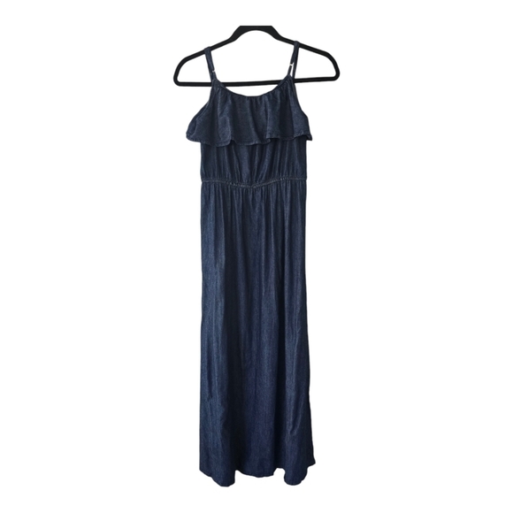 Deja Bleu Maxi Jean Dress Sz S Blue Chambray Sleveles Adjustable Strap Classic