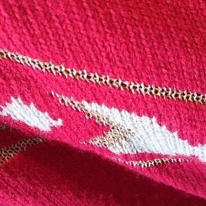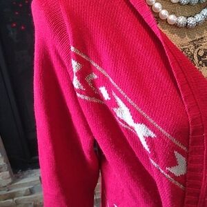 Deja Vu Red Aztec Fringe Metallic Long Duster Length Cardigan sz L