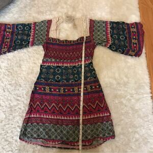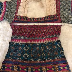 Dejavu boho crochet trim multi color dress size small