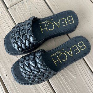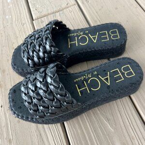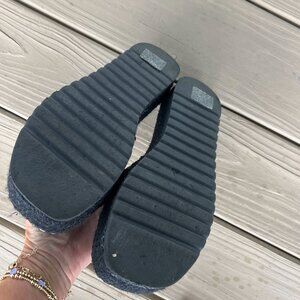 Braided raffia jute upper, slip-on style padded insole, 1.75 inch heel and 1.5 platform