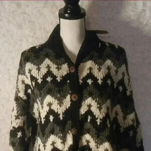Del Mundo Handmade 100% Ecuador Wool Loose Knit Cardigan Size XL Nordic