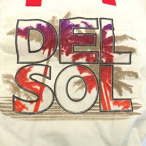Del Sol Color Changing Canvas 17" Tote Bag Red Handles Palm Tree Design - Preowned