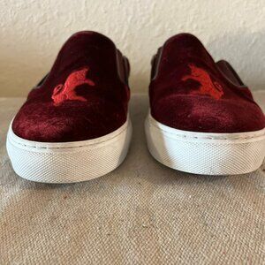 Del Toro Men's Red Velvet Embroidered Bull Slip-On Made In Italy Shoes Sz 10