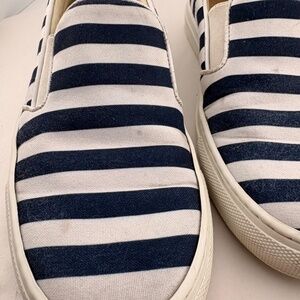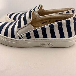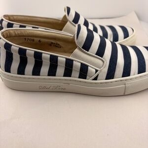 Del Toro Women's Blue & White Striped Slip On Sneakers - size 6
