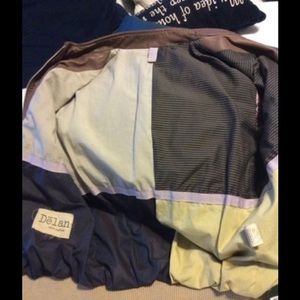 Delan leather baseball jacket. Brand new tags still attached. Jacket measures 18 inches pit to pit. Is lined which make inside of jacket smaller. I would say this jacket would fit a size 6 comfortable. jacket is marked a size 46. I purchased on YOOX. It fits me really tight. arms measure 6 1/2 inches width laying flat which means it's a 13 inch opening on upper arm. I would say 12 1/2 inch opening considering lining. It would fit a small size 8 fitted.