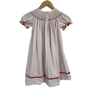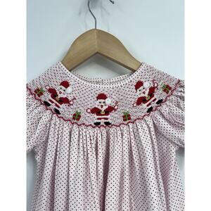 Delaney Pink Polka Dot Smocked Santa Dress Size 4 Christmas Holiday