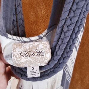 Deletta ANTHROPOLOGIE Womens Dress Small Cream Gray Floral Sundress Pullover Condition: Material has some pilling. No other flaws. Good used condition.