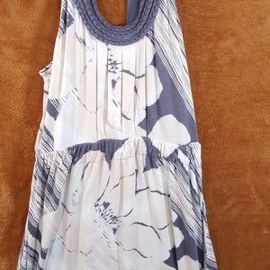 Deletta ANTHROPOLOGIE Womens Dress Small Cream Gray Floral Sundress Pullover