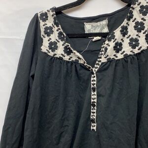 Deletta Anthropologie Black Patterned Top xs