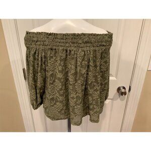 Deletta Anthropologie Green Floral Lace Off-The-Shoulder Top, Size XS