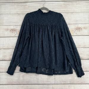 Item: Deletta Anthropologie Mock Neck Lace Blouse Womens XL Blue Shirred Top