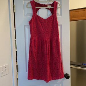 Deletta Anthropologie Sleeveless Lace Hot Pink Skater Style Dress Size Large