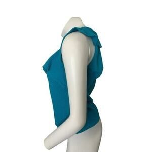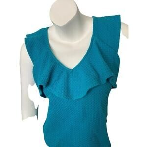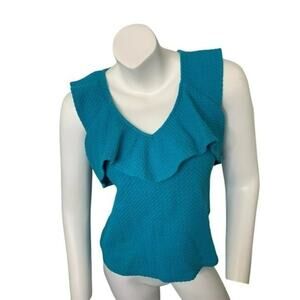 Deletta Anthropologie Small Turquoise v-neck sleeveless blouse ruffle collar