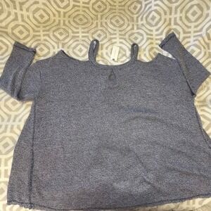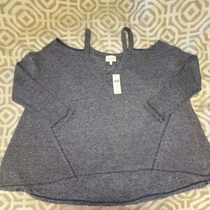 Deletta Anthropologie size XS Blue Cold Shoulder Round Neck Stretch Knit Top