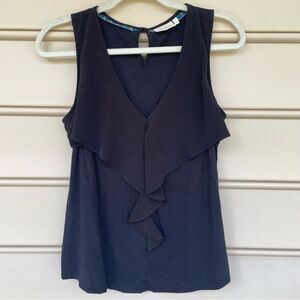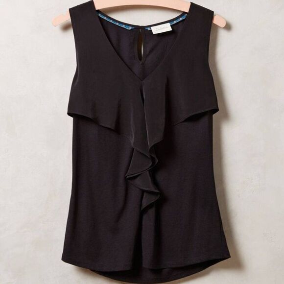 Deletta by Anthropologie Pinna Sleeveless Ruffle Trim Blouse Top Black Women's M
