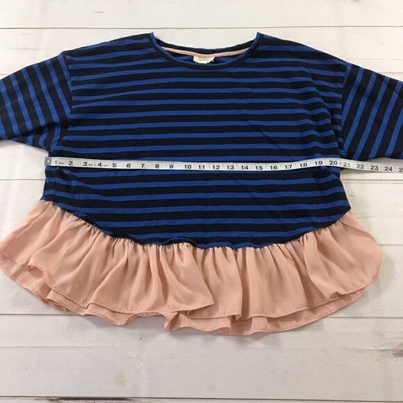Deletta Anthropologie Two Tone Striped Peplum Blouse Medium
