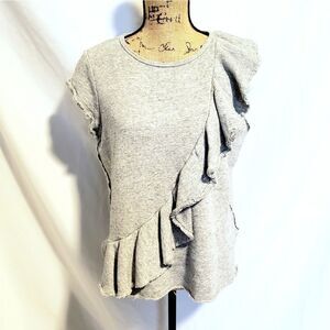 Modern take on a classic Tee in gray with asymmetrical ruffle heavy material almost like a sweater perfect for all seasons Size LP #0476D
