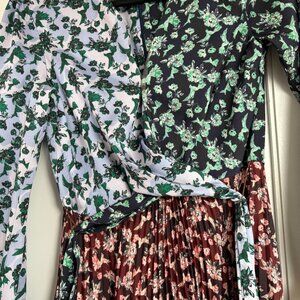 Delfi Collective Midi Dress Contrast Print Floral VNeck Wrap Pleated Skirt Sz XS