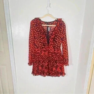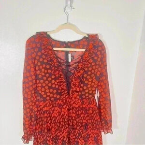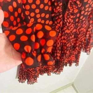 Delfi Collective Polka Dot Ruffle Mini Dress with Lace Up Bodice Black Orange