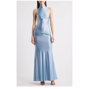 Delfi Collective Roya saphire blue Ruched Twisted Satin Maxi Dress