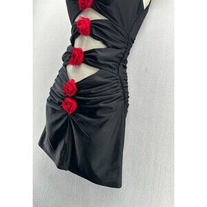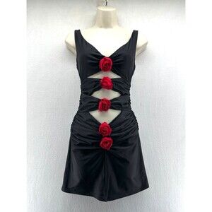 Delfi Collective Shay Short Dress Size XS Black Mini Cutout Red Rose Rosette NWT