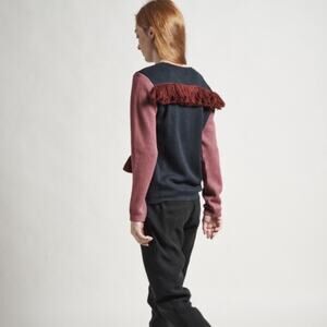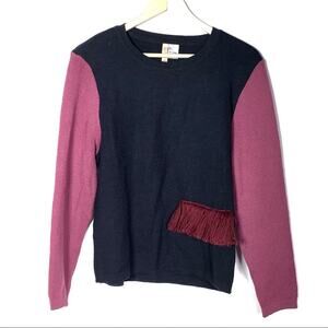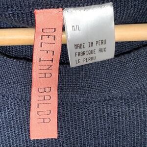 Delfina Balda wool blend navy blue fringed sweater size m/l medium large