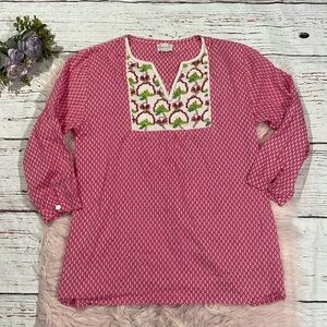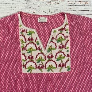 Delfina pink colored geometric beaded floral resort tunic top. This top is great used condition