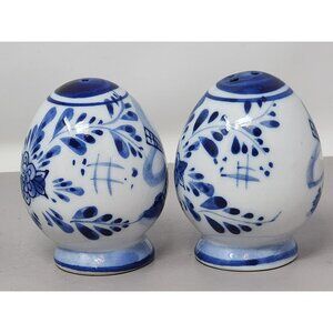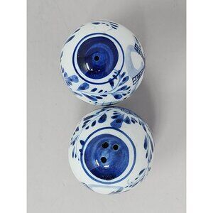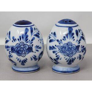 Delft Blue Ceramic Salt & Pepper Shakers With Windmill & Floral Design