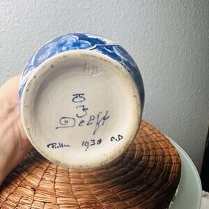 Pieces of Delftware with specific dates and identifiable painter marks are far more valuable than unmarked or modern items. This vase tells a clear story of its origin and is a fantastic display piece for any collector of Dutch pottery or fine ceramics.