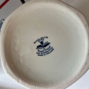 It is crafted from durable earthenware and features hand paint cobalt blue boats and flowers.